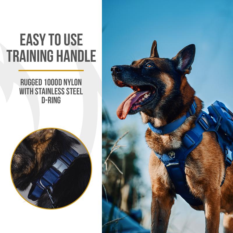 Onetigris Military-Grade Tactical Dog Collar with Handle - Adjustable Heavy Duty for Training & Outdoor Adventures - Perfect for Large Dogs & K9 Gear
