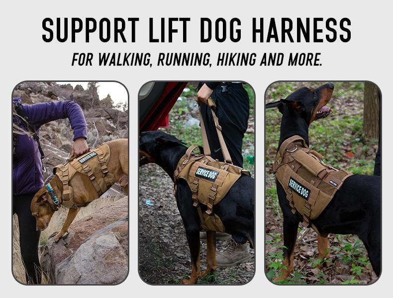 - [Lift Support & Handle]: A adjustable nylon padded straps fit the medium and large dog. Sturdy dog sling help your furry friends go up and down stairs, get on and out of cars, hiking, and daily working. The soft front handle give your more room and comfort to control your dog.